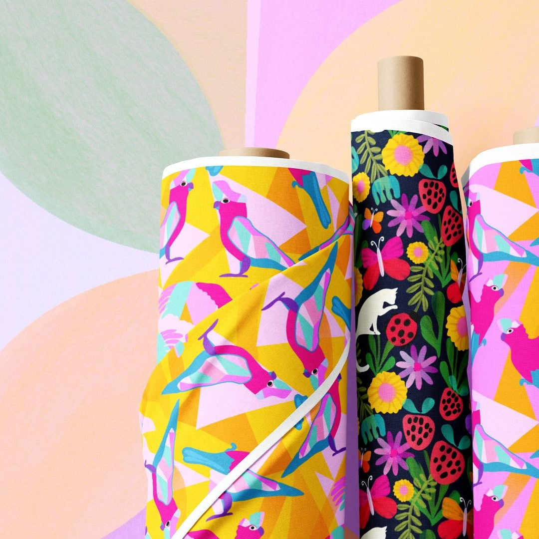 Geo Galahs Pink | Fabric by the Metre