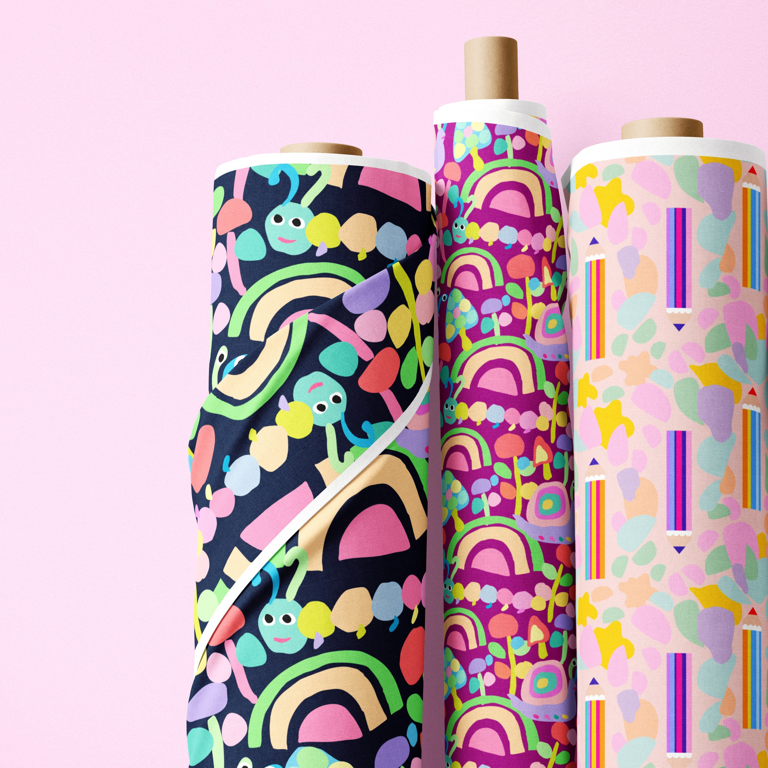You can't find funner than this cutie! Mr Biggy, inspired by small creatures with big personality! Do you know any?! Lovable snails and caterpillars on a super joyful pastel playground! Available in Cream, Eggplant and Noir.